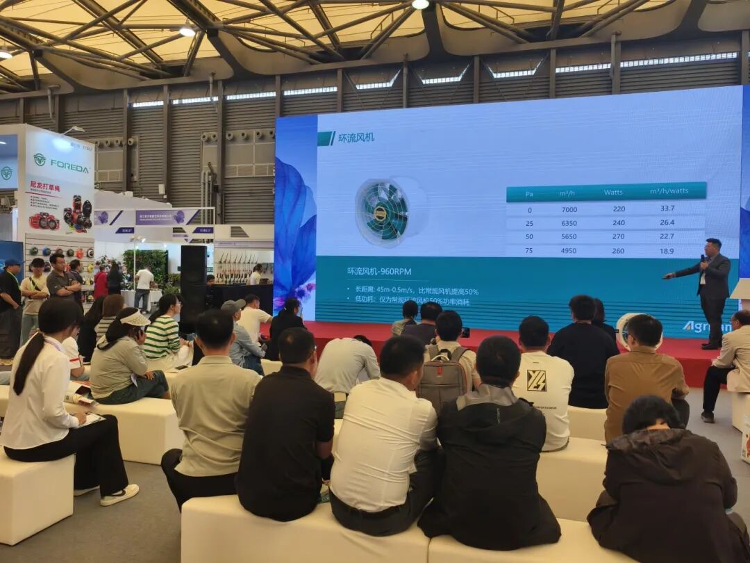 During the exhibition, Agrifan's technical seminar on "Positive Pressure Semi-Enclosed Greenhouse Ventilation Systems" was packed. Professional visitors showed great interest in the system's energy-saving advantages and precise temperature control characteristics, leading to continuous interactive exchanges.